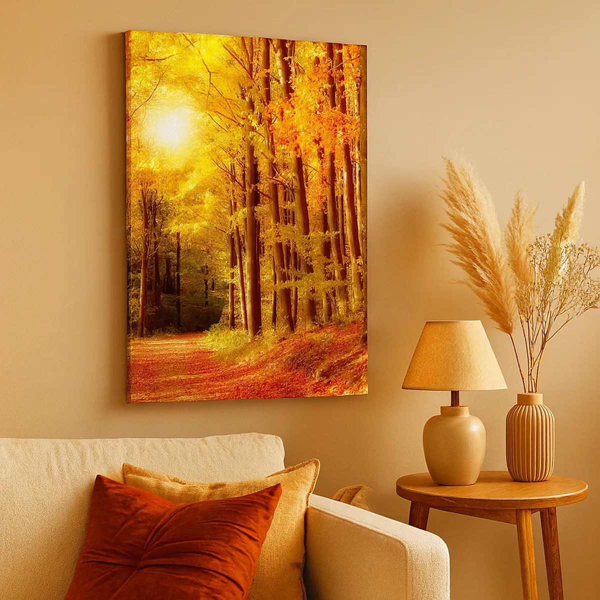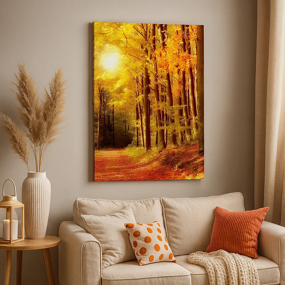 Quadro su tela - Stampe su Tela - Autunno dorato nella via nel bosco - 45x80 cm