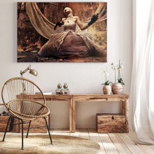 La tela di alta qualità garantisce un'eccellente qualità dei colori e dei dettagli, rendendo questo dipinto un'aggiunta unica a qualsiasi interno. Il formato orizzontale, di 70x50 cm, lo rende ideale per soggiorni, camere da letto, uffici e spazi artistici, creando un'atmosfera di mistero ed eleganza.