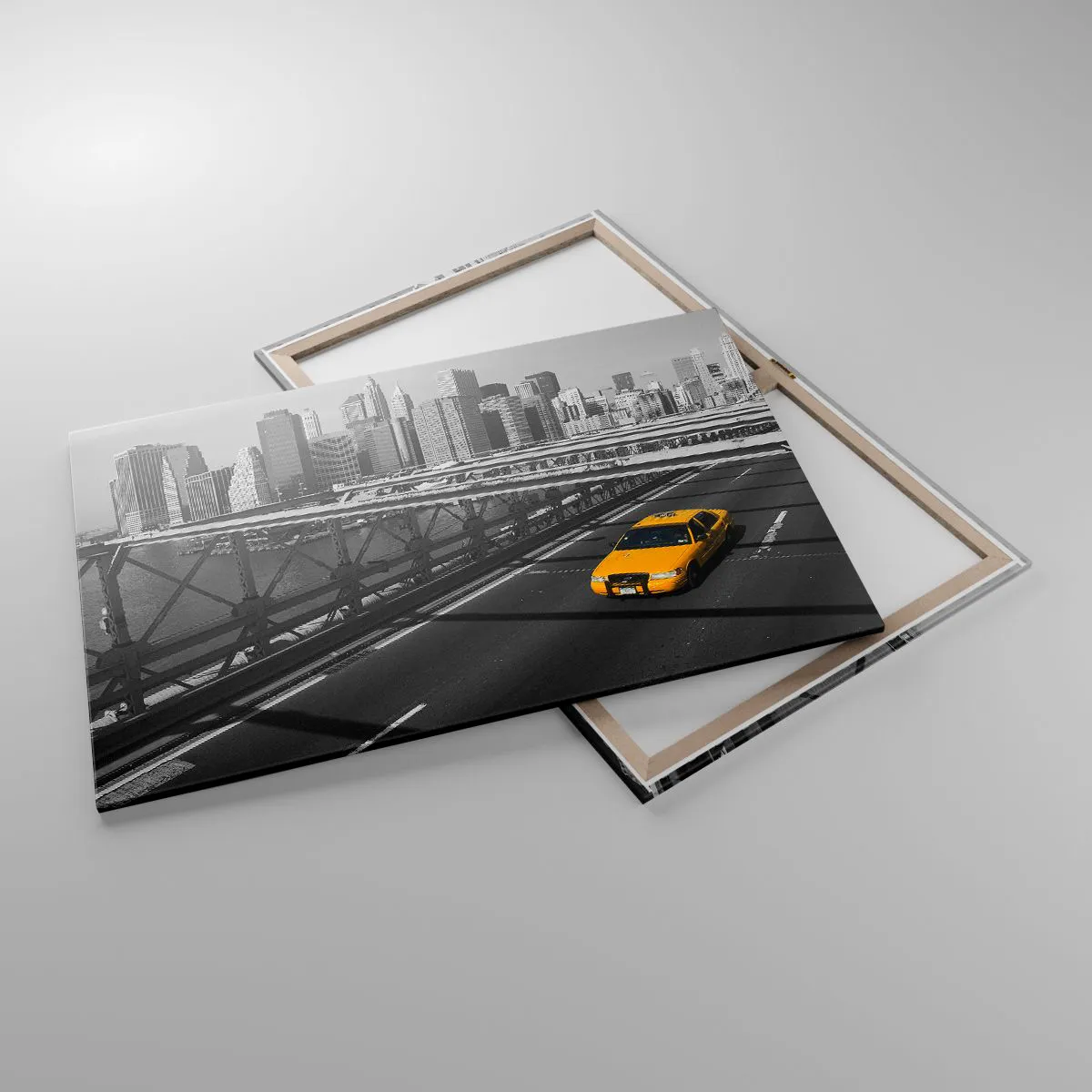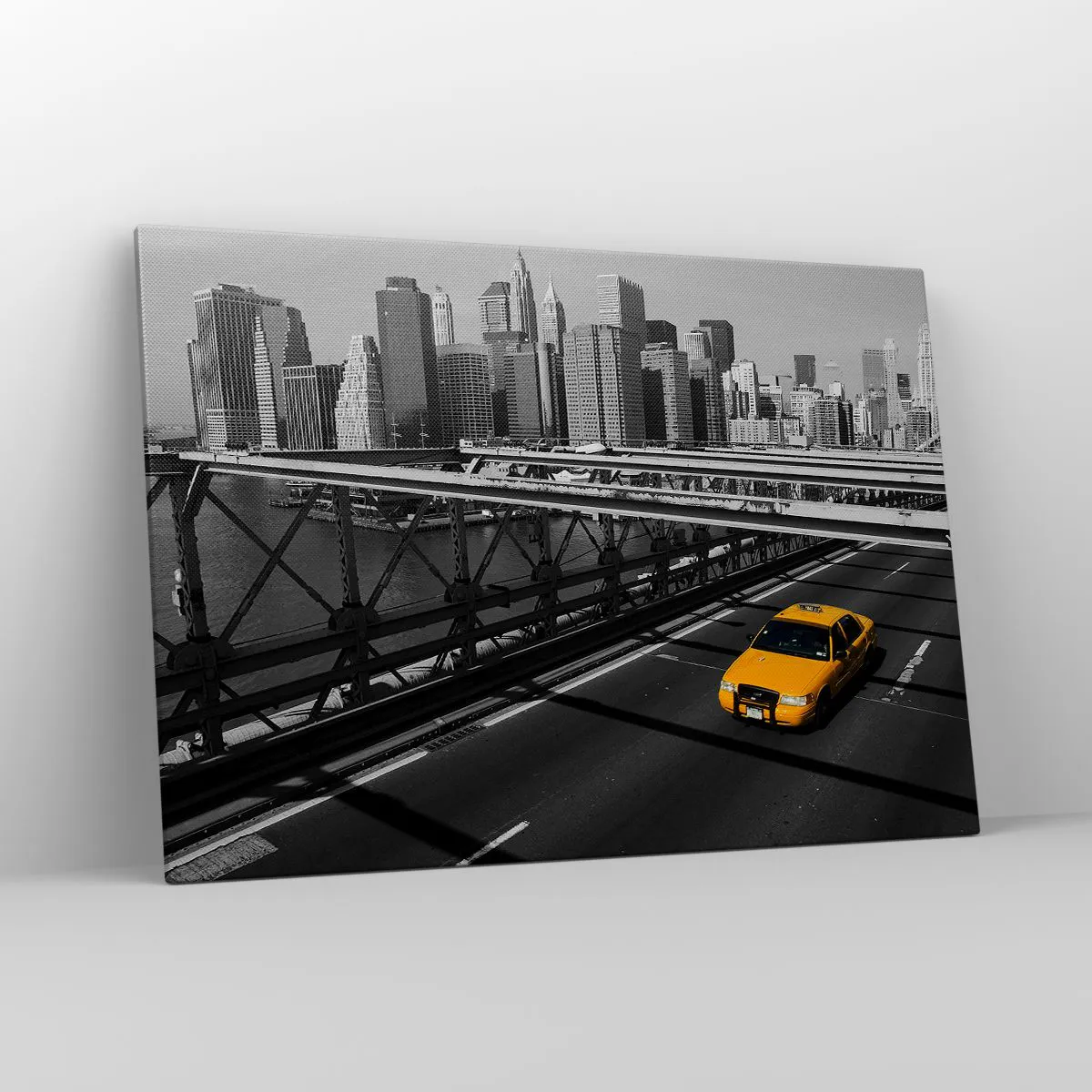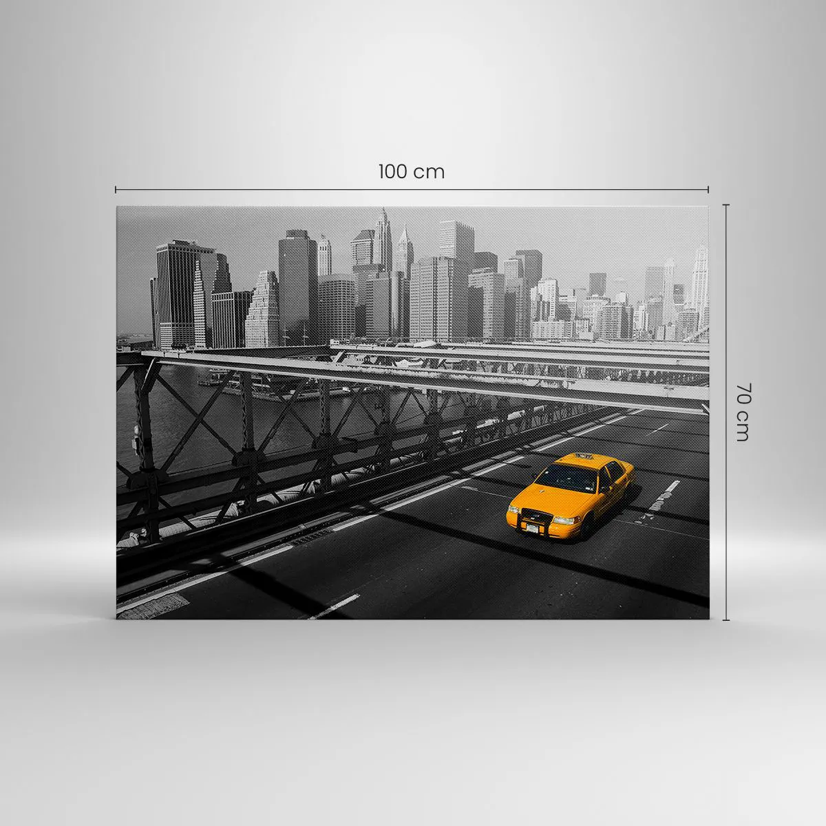Quadro su tela - Stampe su Tela - Taxi giallo su un ponte con vista sullo skyline di New York - 100x70cm - Il colore della grande città - Decorazione murale moderna per soggiorno e camera da letto ARTTOR