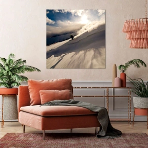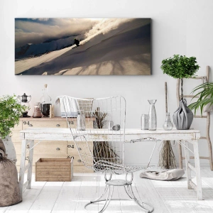 Quadro su tela - Stampe su Tela - Uno sciatore su un pendio circondato da montagne e neve - 140x50cm - Sfida dei monti accettata - Decorazione murale moderna per soggiorno e camera da letto ARTTOR