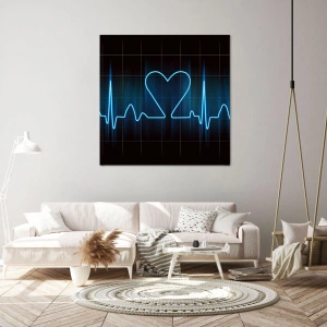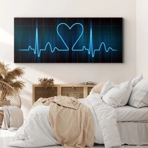 "Nel ritmo del cuore" è una moderna stampa su tela che raffigura una linea vitale di un cardiogramma, che forma la forma di un cuore. Linee dinamiche e pulsanti su uno schermo scuro nei toni del blu conferiscono all'immagine un carattere moderno e tecnologico. Perfetta per studi medici, cliniche e interni moderni dallo stile minimalista.