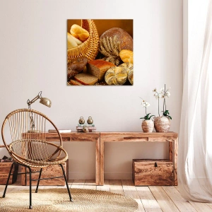 Quadro su tela - Stampe su Tela - Vari tipi di pane in un cestino di vimini su fondo oro - 160x50cm - Direttamente dal forno - Decorazione murale moderna per soggiorno e camera da letto ARTTOR