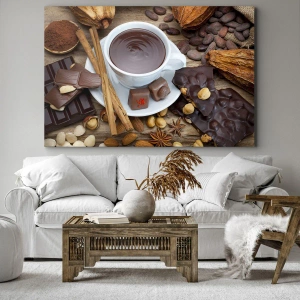 Quadro su tela - Stampe su Tela - Una tazza di cioccolata calda circondata da ingredienti per dessert - 120x80cm - Dalla fantastica fabbrica di cioccolato - Decorazione murale moderna per soggiorno e camera da letto ARTTOR