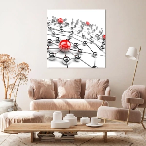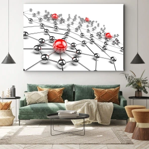 Quadro su tela - Stampe su Tela - Una rete di palline metalliche con accenti rossi - 160x50cm - Rete argentea - Decorazione murale moderna per soggiorno e camera da letto ARTTOR