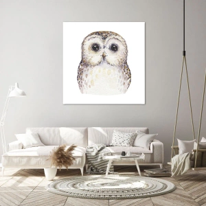 Quadro su tela - Stampe su Tela - Ritratto di un gufo su uno sfondo chiaro con colori delicati - 120x80cm - Guardami negli occhi - Decorazione murale moderna per soggiorno e camera da letto ARTTOR