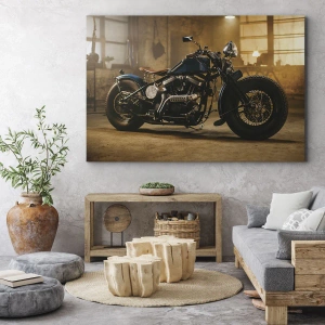 Quadro su tela - Stampe su Tela - Una motocicletta elegante in un interno industriale con luci calde - 120x80cm - Posso tutto - Decorazione murale moderna per soggiorno e camera da letto ARTTOR