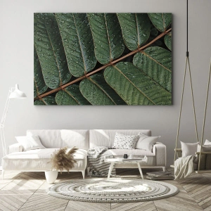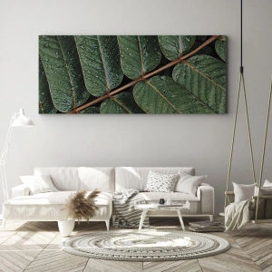 Quadro su tela - Stampe su Tela - Macro di foglie verdi con gocce di rugiada - 120x80cm - Al ritmo verde - Decorazione murale moderna per soggiorno e camera da letto ARTTOR