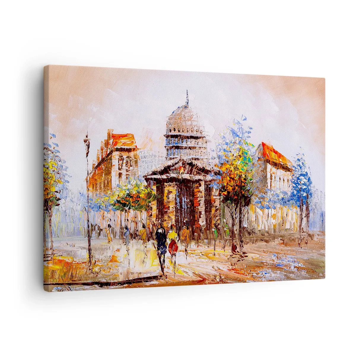Quadro su tela - Stampe su Tela - Scena cittadina impressionista con un edificio storico - 70x50cm - Passeggiata a Parigi - Decorazione murale moderna per soggiorno e camera da letto ARTTOR