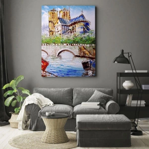 Quadro su tela - Stampe su Tela - Paesaggio con un ponte e una cattedrale in stile classico - 120x80cm - Il loro tempo non passa mai - Decorazione murale moderna per soggiorno e camera da letto ARTTOR