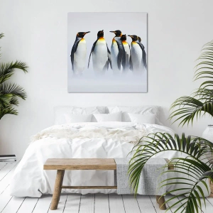Quadro su tela - Stampe su Tela - Un gruppo di pinguini imperatore nella nebbia invernale - 120x80cm - Incontro in abito da sera - Decorazione murale moderna per soggiorno e camera da letto ARTTOR