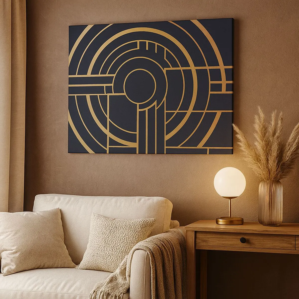 Quadro su tela - Stampe su Tela - Motivo geometrico con linee dorate - 100x70cm - Il giro delle cose - Decorazione murale moderna per soggiorno e camera da letto ARTTOR