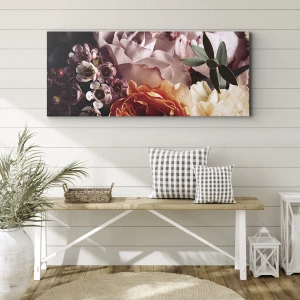 Quadro su tela - Stampe su Tela - Un primo piano di una composizione floreale colorata - 140x50cm - Avvolti dalla bellezza - Decorazione murale moderna per soggiorno e camera da letto ARTTOR