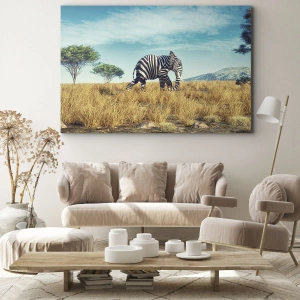 Quadro su tela - Stampe su Tela - Zebra in un paesaggio africano - 100x70cm - Il grigio non è più di moda - Decorazione murale moderna per soggiorno e camera da letto ARTTOR