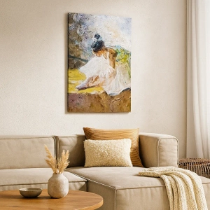 Quadro su tela - Stampe su Tela - Una ballerina in abito bianco in stile pittorico su uno sfondo impressionista. - 120x80cm - Dal quadro di Degas - Decorazione murale moderna per soggiorno e camera da letto ARTTOR