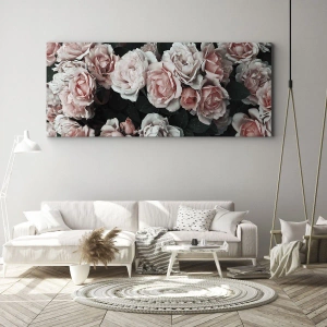 - Questo dipinto raffigura rose rosa su uno sfondo scuro in una composizione delicata. Perfetto per interni eleganti e romantici. La stampa su tela misura 70x50 cm.