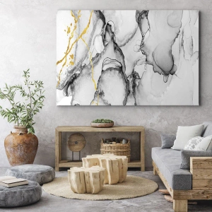 Quadro su tela - Stampe su Tela - Motivi astratti in bianco e nero con accenti dorati - 120x80cm - Composizione con motivo d'oro - Decorazione murale moderna per soggiorno e camera da letto ARTTOR