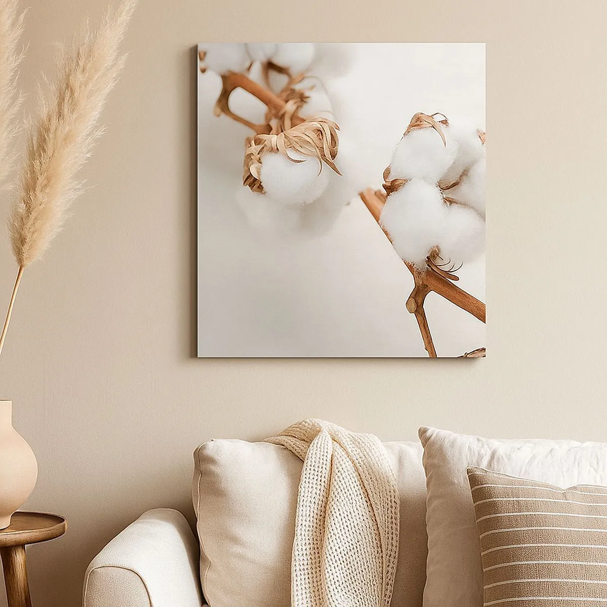 • Fiore di cotone, Fiore, Ramoscello di cotone, Botanica, Fiori, Natura, Pastello, Per l'ufficio, Per lo studio, Per la sala da pranzo, Per l'ingresso, Per il soggiorno, Per la camera da letto, Bianco, Marrone, Quadrato