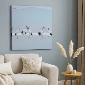 Quadro su tela - Stampe su Tela - Un gruppo di gru contro un cielo azzurro e il sole nascente - 160x50cm - Dopo un giorno rovente - Decorazione murale moderna per soggiorno e camera da letto ARTTOR