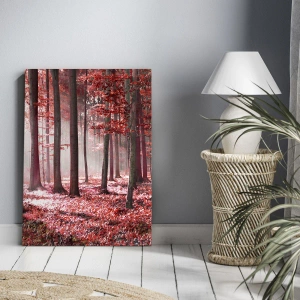 Il motivo della foresta simboleggia pace, relax e armonia con la natura circostante. Le tonalità di rosso aggiungono un tocco unico all'immagine, catturando l'attenzione e creando un'atmosfera calda e raffinata. Quest'opera d'arte si integra perfettamente con una varietà di stili d'interni, aggiungendo eleganza ed espressività.