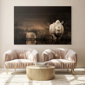 Quadro su vetro - Rinoceronte contro il sole al tramonto - 100x70cm - Bianco contro la natura - Decorazione murale moderna per soggiorno e camera da letto ARTTOR