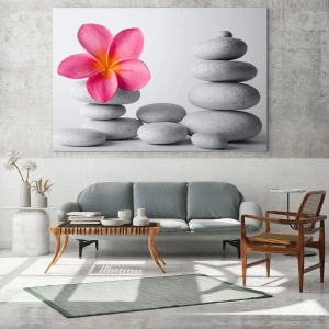 Quadro su vetro - Un fiore rosa contro un mucchio di pietre bianche - 50x70cm - Pietra su pietra, e su questa pietra... - Decorazione murale moderna per soggiorno e camera da letto ARTTOR