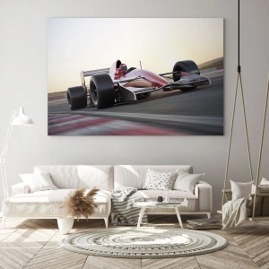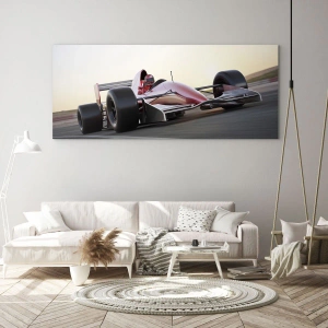 • Questo dipinto raffigura una dinamica monoposto di Formula 1 che sfreccia su una pista al tramonto. Perfetto per gli appassionati di sport motoristici e corse, si adatta perfettamente agli interni moderni.