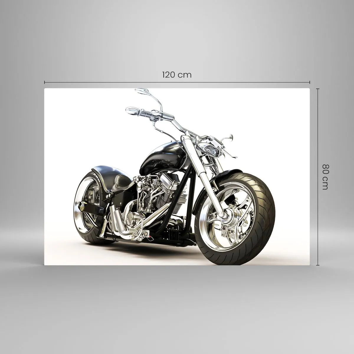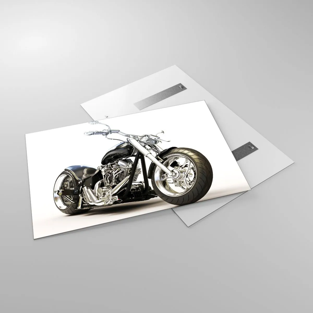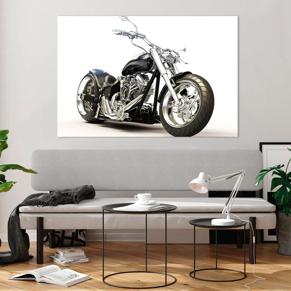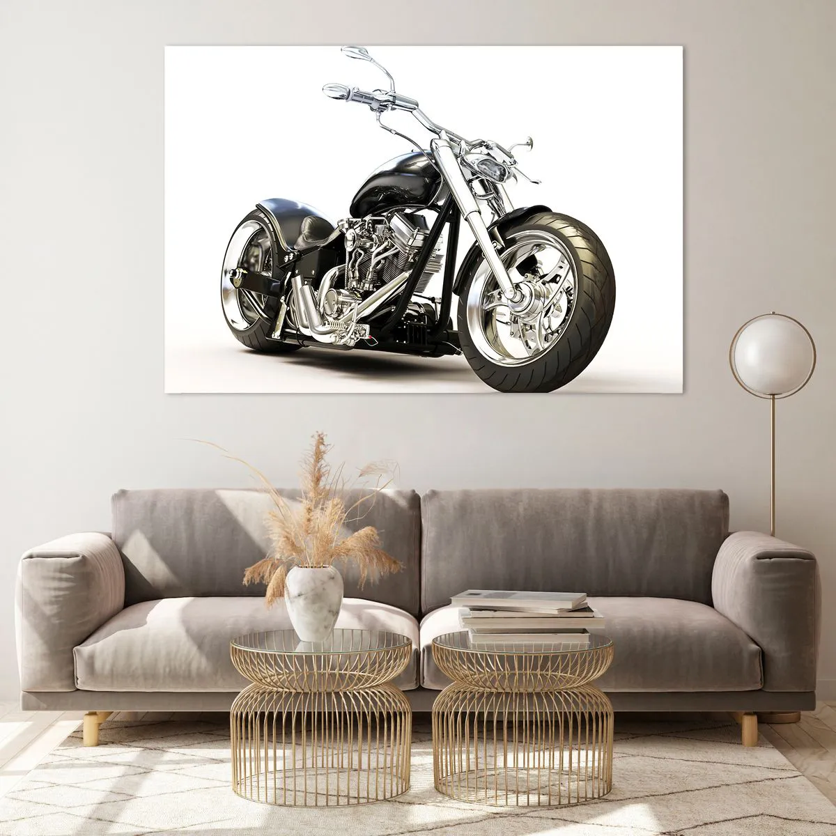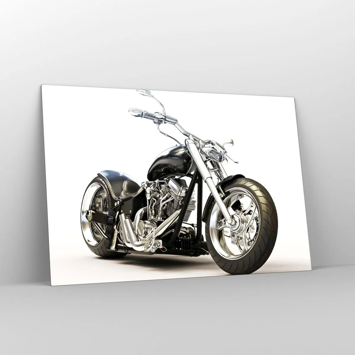 Quadro su vetro - Una motocicletta chopper nera su uno sfondo chiaro - 120x80cm - Potenza e carattere - Decorazione murale moderna per soggiorno e camera da letto ARTTOR