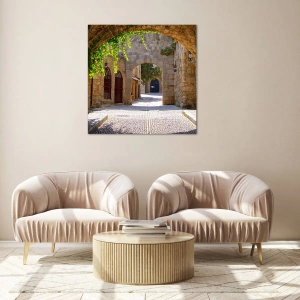 Quadro su vetro - Archi in pietra e strade acciottolate in stile medievale - 70x100cm - Adesso passerà il corteo - Decorazione murale moderna per soggiorno e camera da letto ARTTOR
