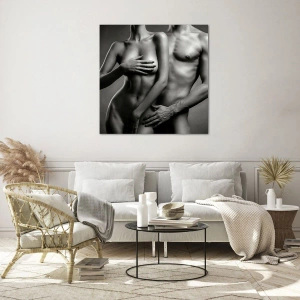 Quadro su vetro - Composizione in bianco e nero con sagome nude di una coppia - 70x50cm - Adamo ed Eva - Decorazione murale moderna per soggiorno e camera da letto ARTTOR