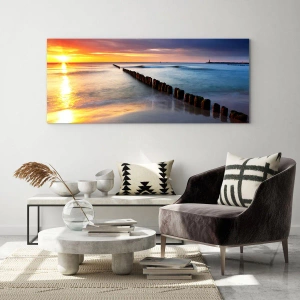 Quadro su vetro - Tramonto sul mare con frangiflutti in legno - 50x70cm - Ascolta il silenzio - Decorazione murale moderna per soggiorno e camera da letto ARTTOR