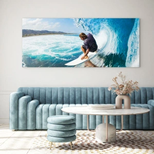 Quadro su vetro - Surfista in un tunnel d'acqua con l'oceano sullo sfondo - 100x70cm - Ballando con le onde - Decorazione murale moderna per soggiorno e camera da letto ARTTOR