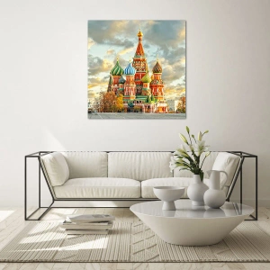 Quadro su vetro - Cattedrale di San Basilio a Mosca contro un cielo nuvoloso - 100x70cm - Neanche Disney potrebbe idearlo - Decorazione murale moderna per soggiorno e camera da letto ARTTOR