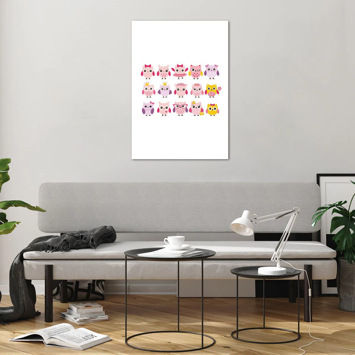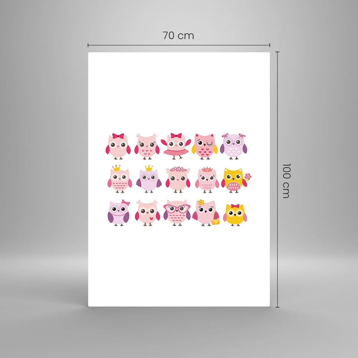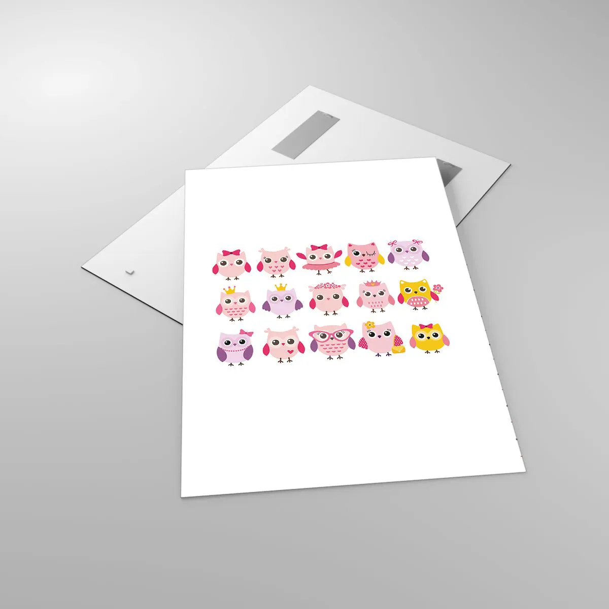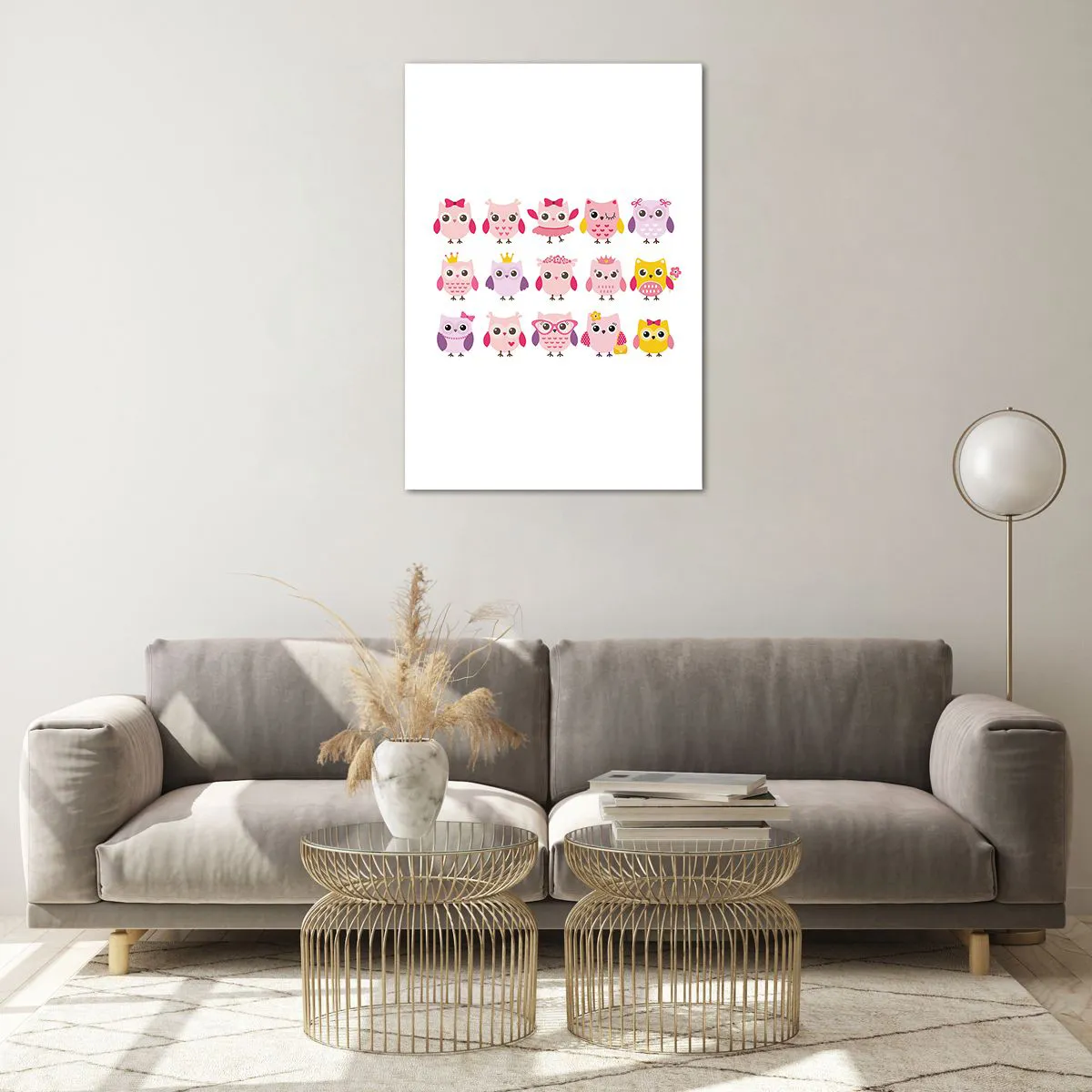 Quadro su vetro - Simpatici gufi dai colori pastello - 70x100cm - Una più dolce dell'altra - Decorazione murale moderna per soggiorno e camera da letto ARTTOR