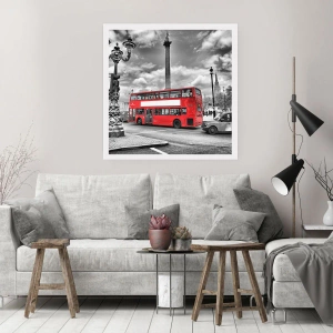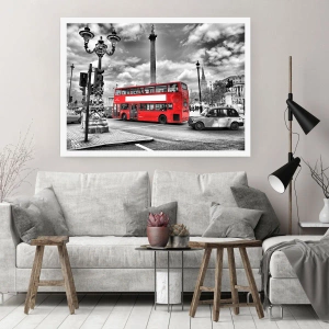 Poster - Un autobus rosso sullo sfondo di una città in bianco e nero - 50x70cm - Il vero flusso sanguigno della città - Decorazione murale moderna per soggiorno e camera da letto ARTTOR