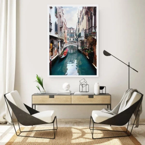 Poster - Paesaggio veneziano con gondola e ponte - 40x40 cm