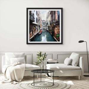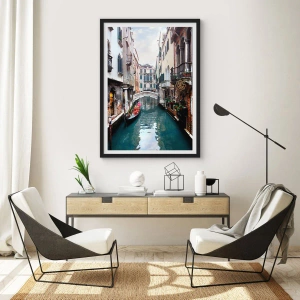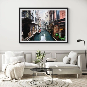 Poster in cornice nera - Un canale a Venezia con una gondola ed edifici storici - 70x50cm - Paesaggio veneziano con gondola e ponte - Decorazione murale moderna per soggiorno e camera da letto ARTTOR