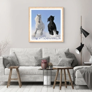 Poster in cornice rovere chiaro - Galoppo in bianco e nero - 50x70 cm