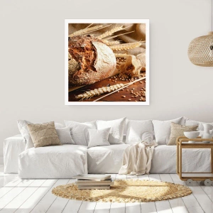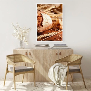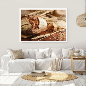 Poster - Pane croccante con cereali e spighe di grano su fondo in legno - 100x70cm - Appetitoso, profumato, croccante - Decorazione murale moderna per soggiorno e camera da letto ARTTOR