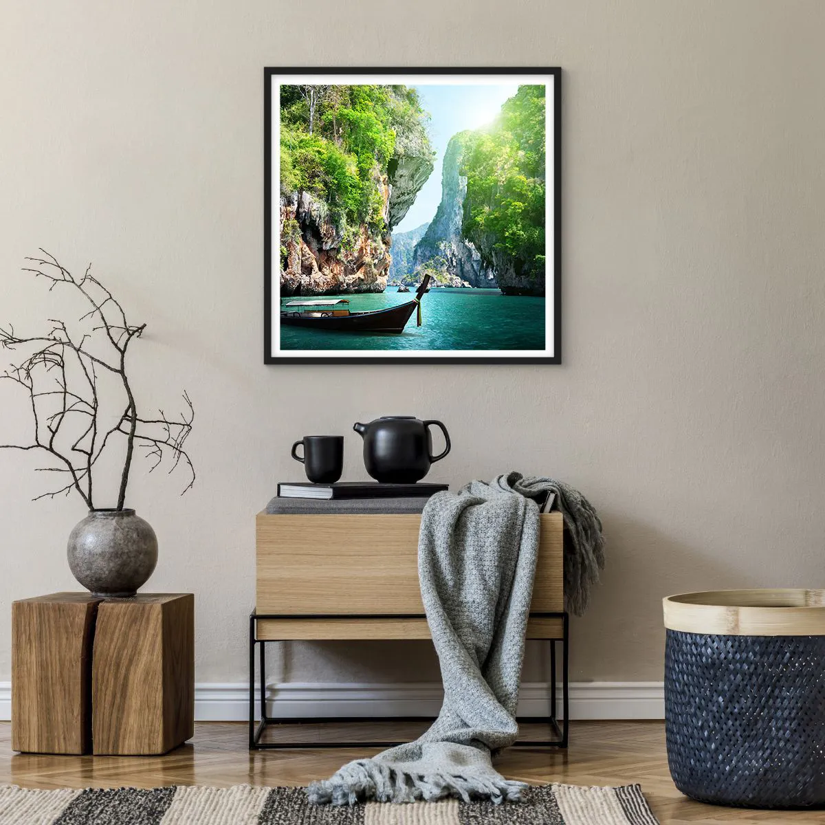 Poster in cornice nera - Invito a un viaggio esotico - 60x60 cm