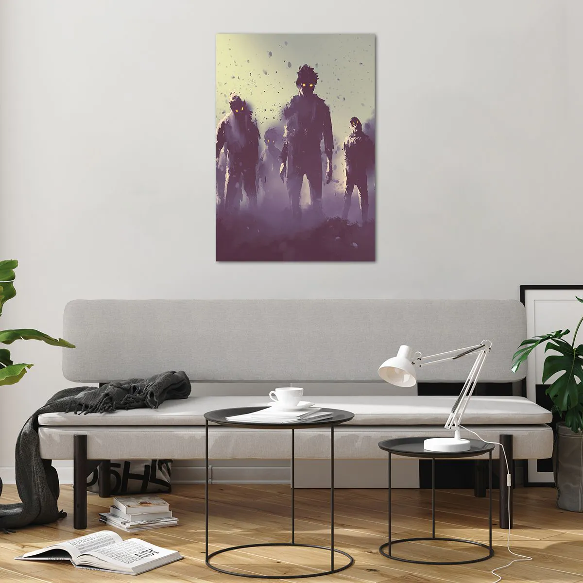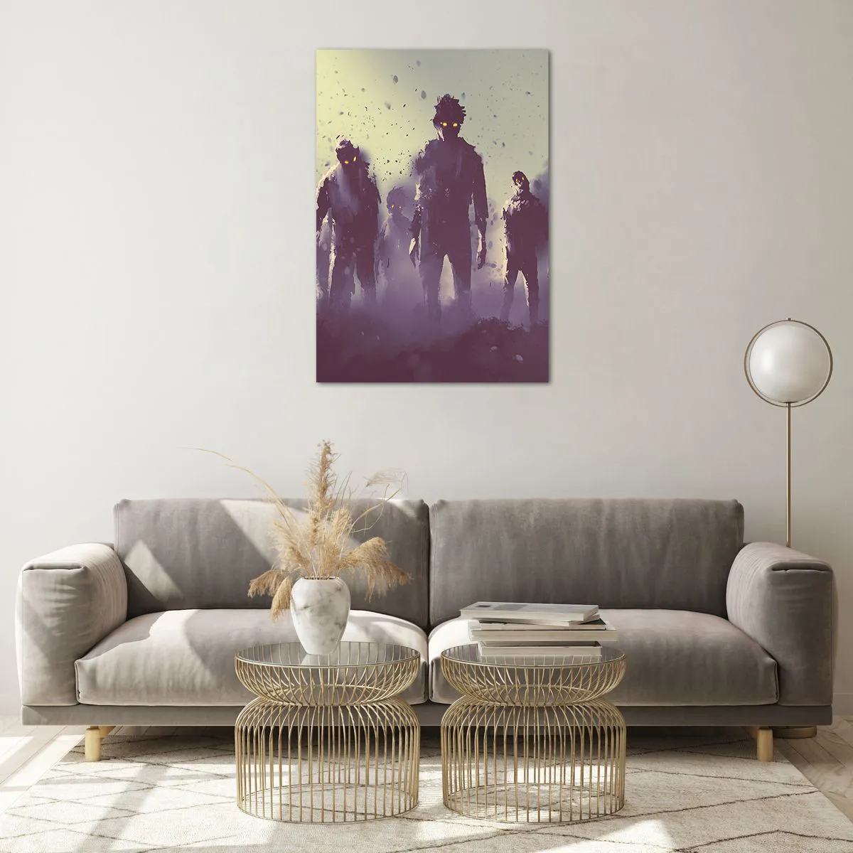 Quadro su vetro - Scena scura con sagome con occhi gialli - 70x100cm - Attenzione! Arrivano - Decorazione murale moderna per soggiorno e camera da letto ARTTOR