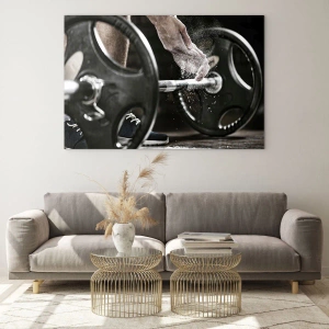 Quadro su vetro - Sollevamento pesi con gesso sulle mani e bilanciere - 50x70cm - Sfida accettata! - Decorazione murale moderna per soggiorno e camera da letto ARTTOR