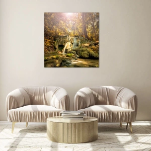 Quadro su vetro - Cascata boschiva in verde - 60x60 cm