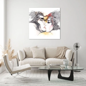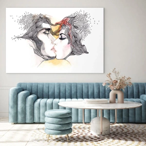 I creatori si sono ispirati alle emozioni e alle relazioni interpersonali, il che è evidente nei dettagli sottili e nei motivi armoniosi. L'uso di elementi dinamici e astratti conferisce al dipinto un carattere unico che delizierà sia gli amanti dell'arte contemporanea che gli amanti delle decorazioni minimaliste. Un bacio come simbolo di amore e vicinanza è qui presentato in modo unico ed espressivo.