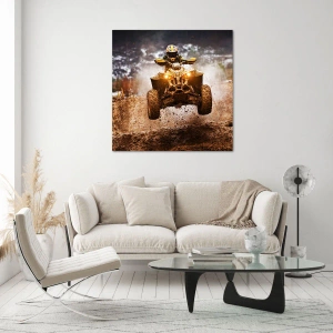 Quadro su vetro - Quad in azione su terreni fangosi in un ambiente dinamico - 100x70cm - No risk no fun - Decorazione murale moderna per soggiorno e camera da letto ARTTOR
