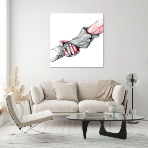 Quadro su vetro - Disegno astratto di due mani in una stretta di mano - 50x70cm - Sei in buone mani - Decorazione murale moderna per soggiorno e camera da letto ARTTOR