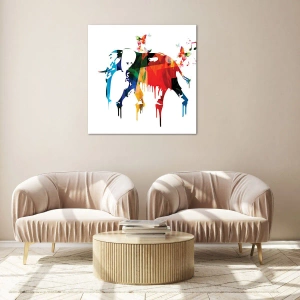 Il quadro su vetro è realizzato con vetro dello spessore di 4 mm. I bordi del vetro hanno una smussatura trapezoidale. Il quadro è sicuro nel suo utilizzo ed è pronto per essere appeso: possiede dei punti di sospensione metallici fissati alla parte posteriore del quadro e dei distanziatori in schiuma che permettono una distanza uniforme del quadro dalla parete.