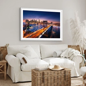 Poster in cornice bianca - Il ponte luminoso fino al cuore della città - 30x30 cm