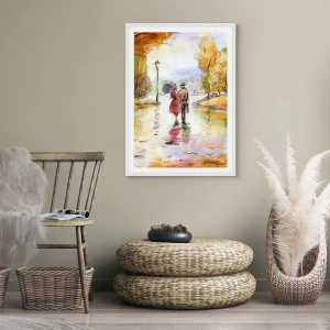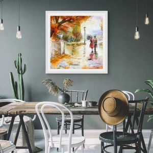 Poster in cornice bianca - Autunno romantico nel parco - 60x60 cm