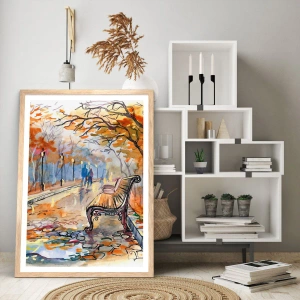 Poster in cornice rovere chiaro - Passeggiando insieme l'autunno - 70x100 cm