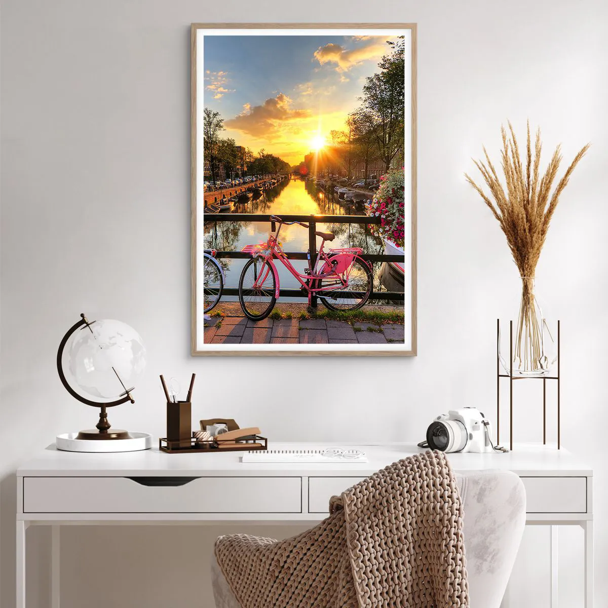 Poster in cornice rovere chiaro - Mattino di primavera ad Amsterdam - 61x91 cm
